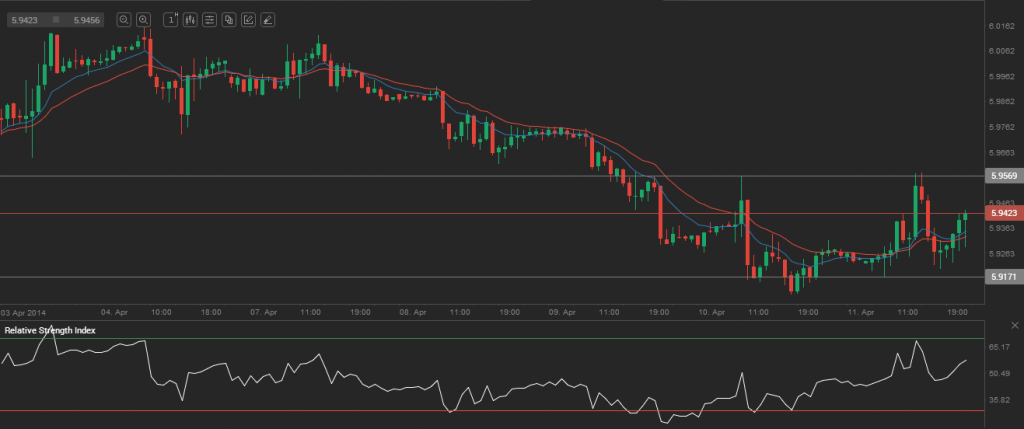 On Monday, according to Binary Tribune’s daily analysis, in case USD/NOK manages to breach the first resistance level at 5.9569, it will probably continue up to test 5.9781. In case the second key resistance is broken, the pair will probably attempt to advance to 5.9967.