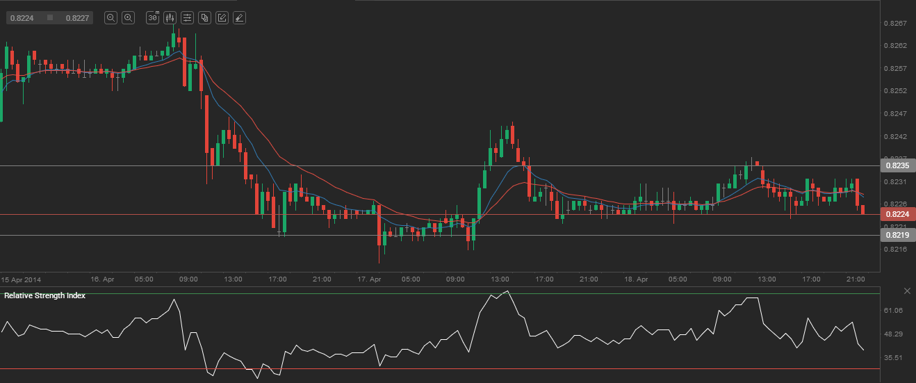 During Friday’s trading session EUR/GBP traded within the range of 0.8222-0.8238 and closed at 0.8226.