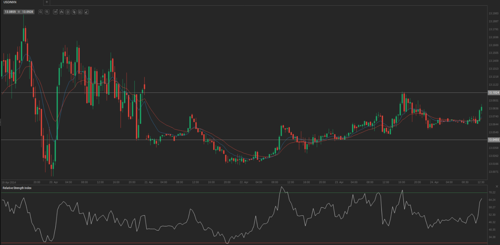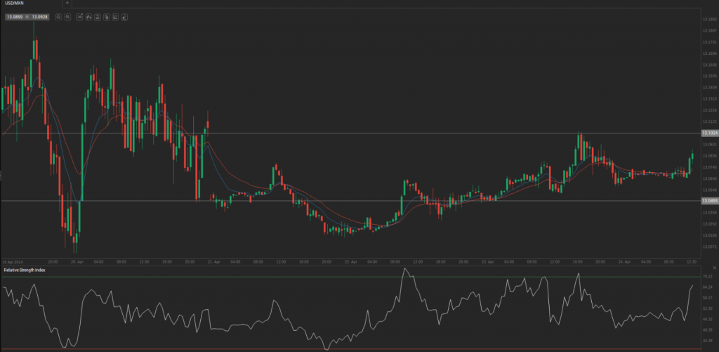 During yesterday’s trading session USD/MXN traded within the range of 13.0512-13.1082 and closed at 13.0712.