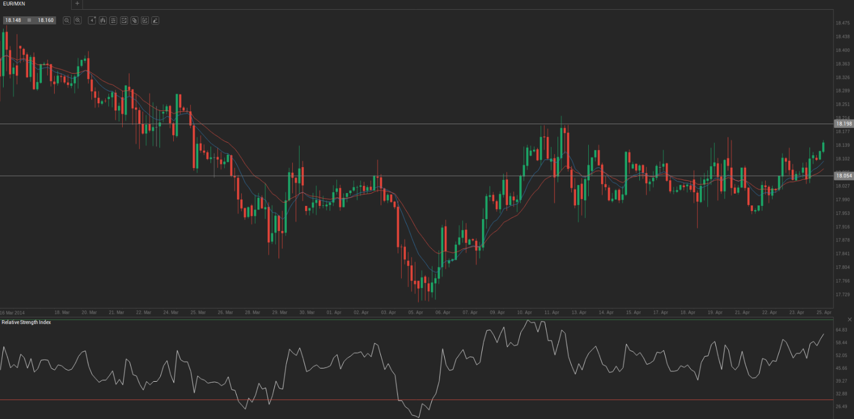 At 8:52 GMT today EUR/MXN was adding 0.24% for the day to trade at 18.153. The pair touched a daily high at 18.157 at 8:30 GMT, breaching the first resistance level of 18.156.