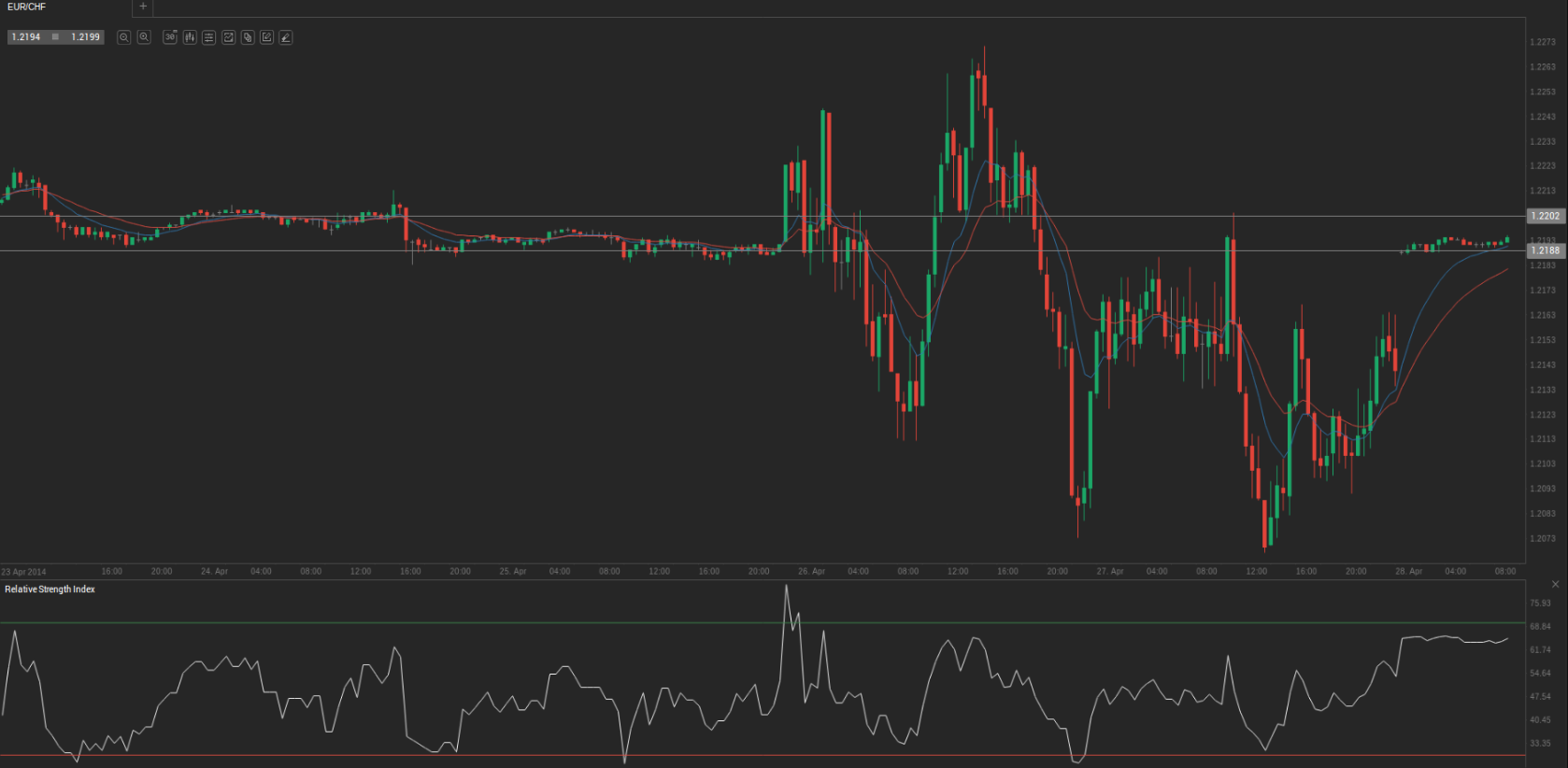 During Friday’s trading session EUR/CHF traded within the range of 1.2186-1.2200 and closed at 1.2196.
