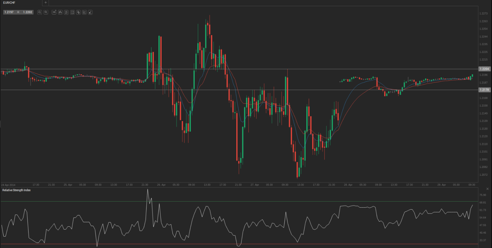 During Friday’s trading session EUR/CHF traded within the range of 1.2172-1.2198 and closed at 1.2194.