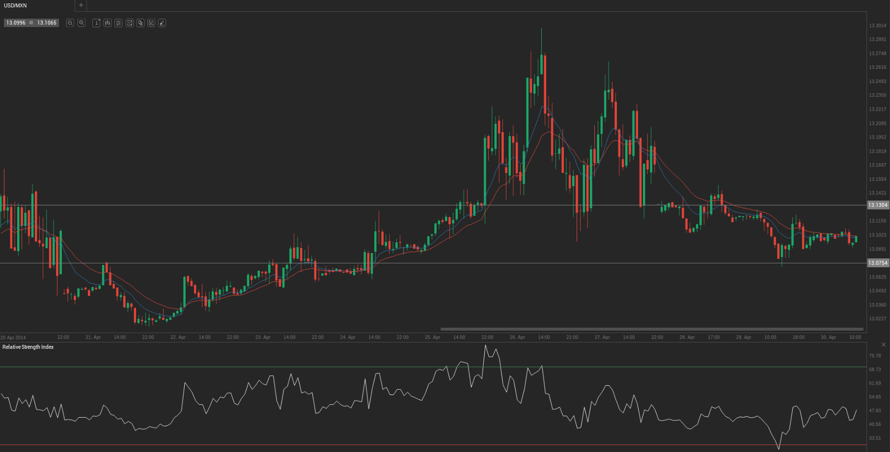 At 9:00 GMT today USD/MXN was losing 0.04% for the day to trade at 13.0986. The pair touched a daily low at 13.0935 at 8:00 GMT.