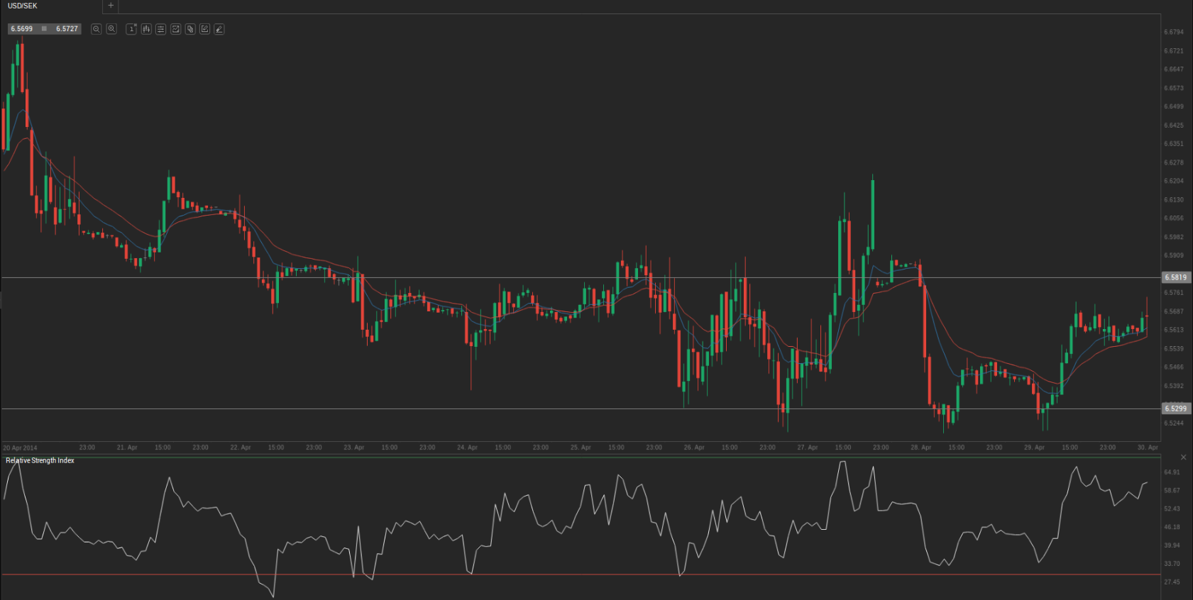 During yesterday’s trading session USD/SEK traded within the range of 6.5226-6.5746 and closed at 6.5596.