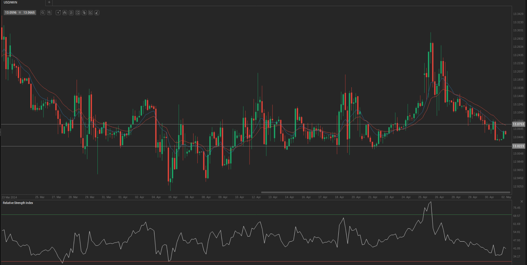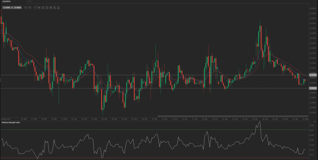 During yesterday’s trading session USD/MXN traded within the range of 13.0383-13.0915 and closed at 13.0405.