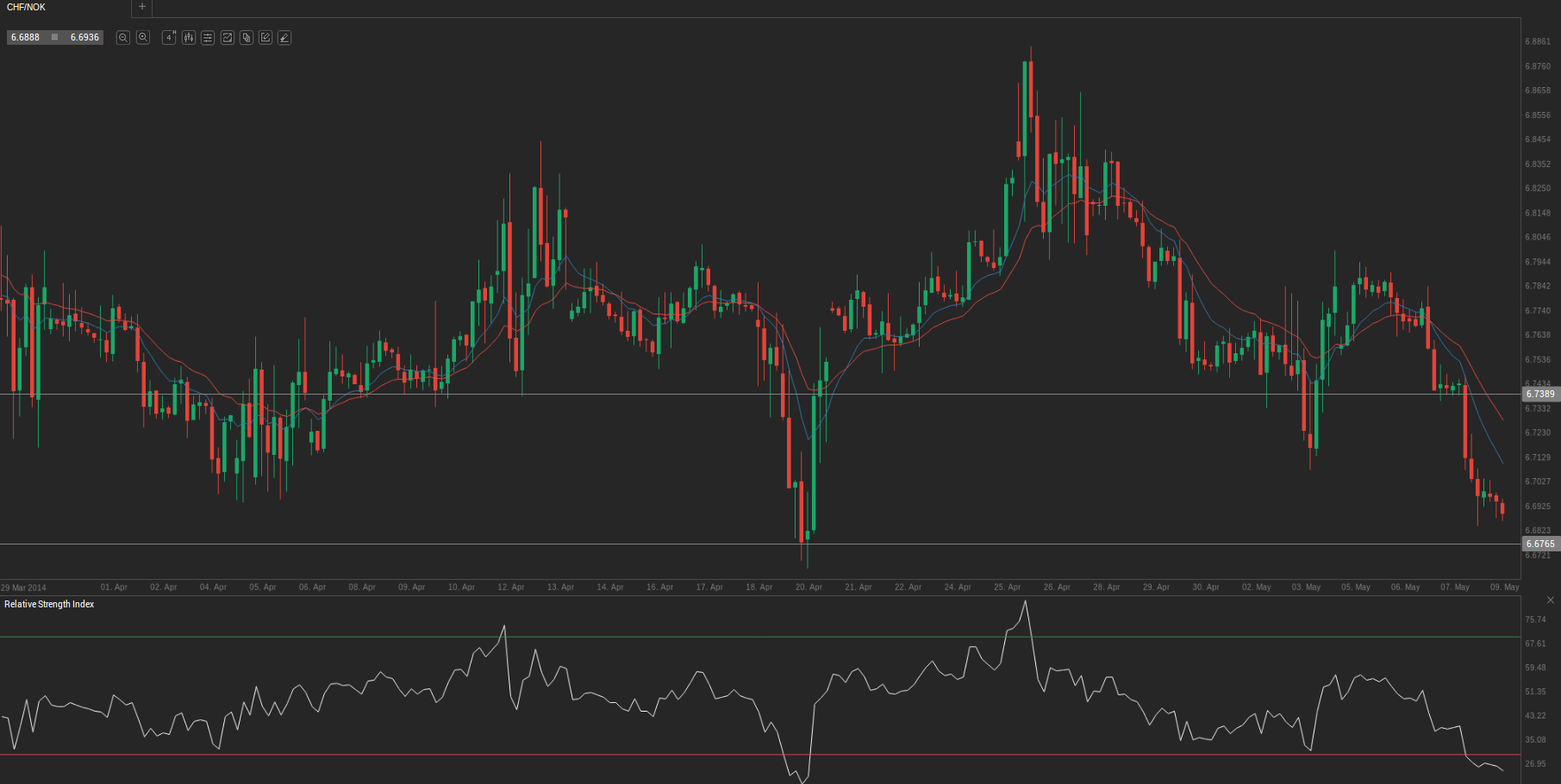 During yesterday’s trading session CHF/NOK traded within the range of 6.6864-6.7493 and closed at 6.7028.