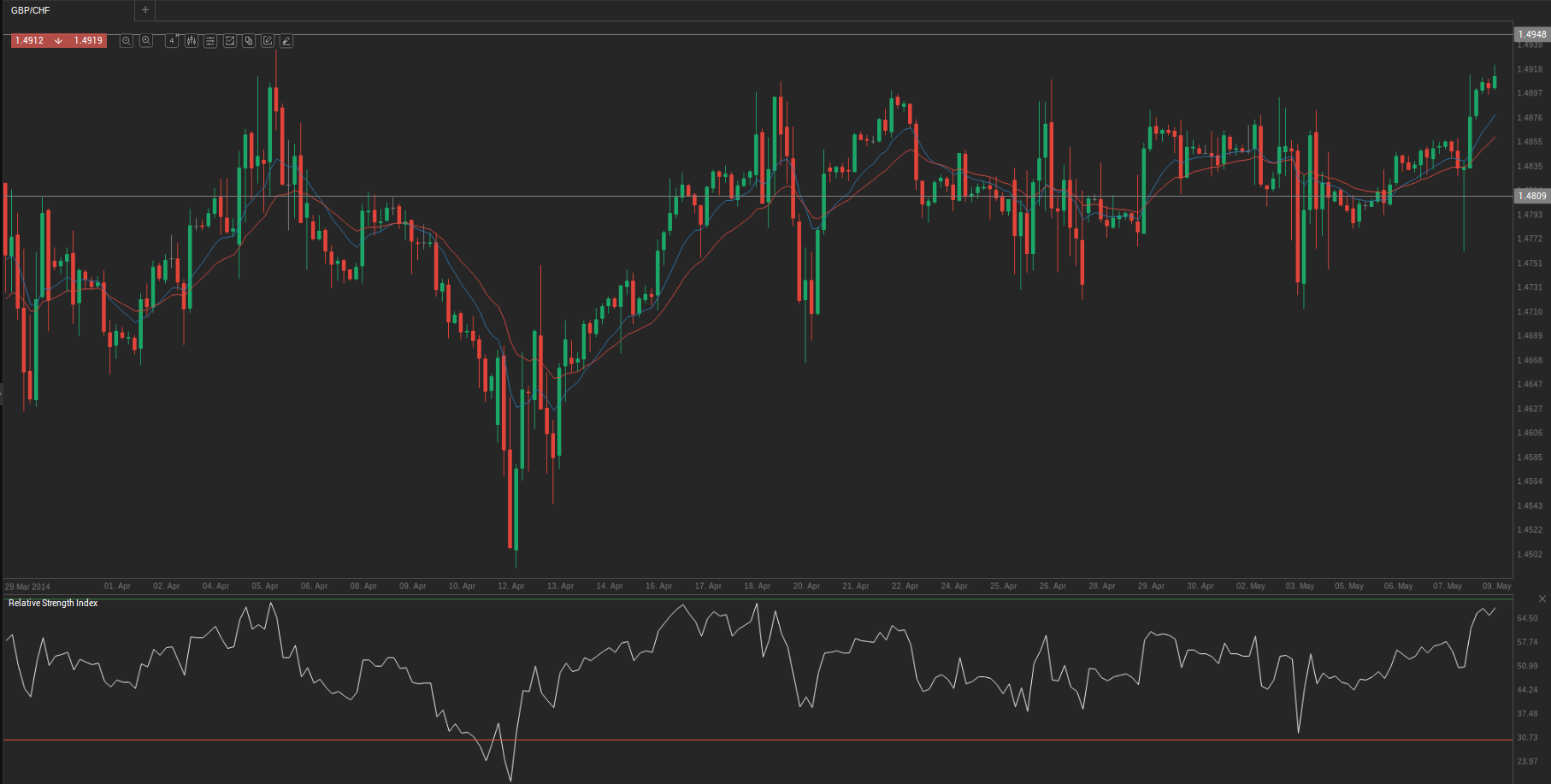 During yesterday’s trading session GBP/CHF traded within the range of 1.4766-1.4915 and closed at 1.4903.