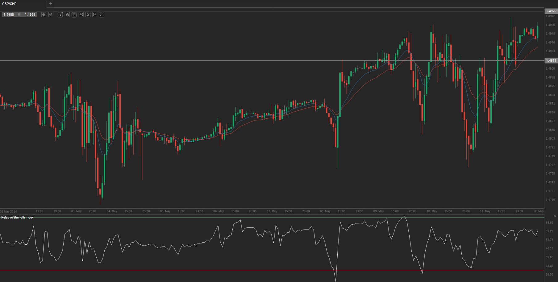 During Friday’s trading session GBP/CHF traded within the range of 1.4895-1.4946 and closed at 1.4943.