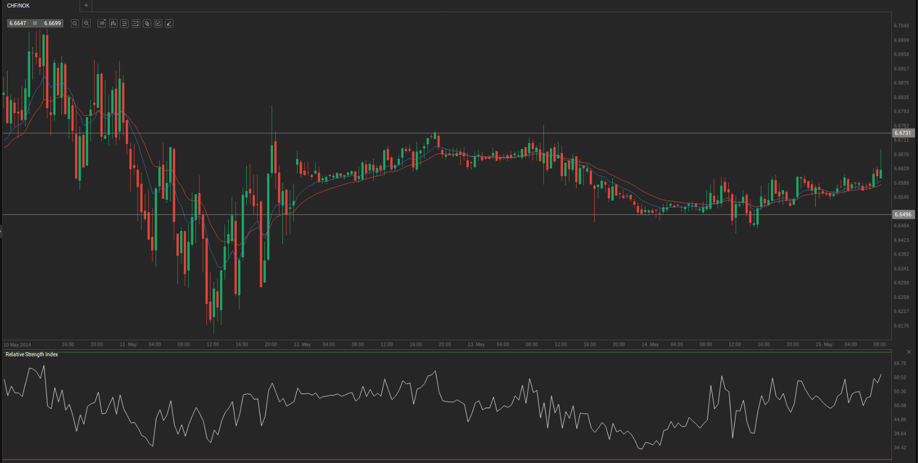 At 6:22 GMT today CHF/NOK was adding 0.11% for the day to trade at 6.6658. The pair touched a daily high at 6.6719 at 6:06 GMT, breaching the first key resistance.