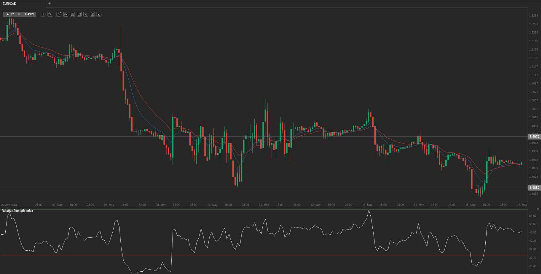 During yesterday’s trading session EUR/CAD traded within the range of 1.4833-1.4953 and closed at 1.4921.