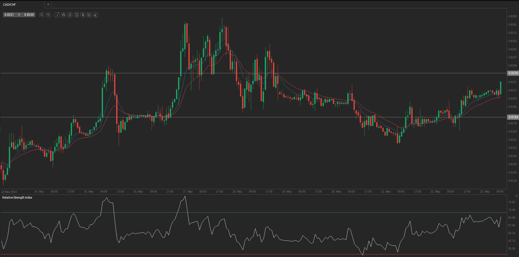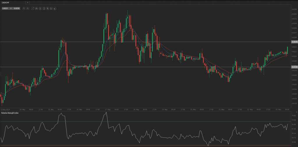 At 8:34 GMT today CAD/CHF was gaining 0.21% for the day to trade at 0.8223. The pair touched a daily high at 0.8224 at 8:07 GMT.