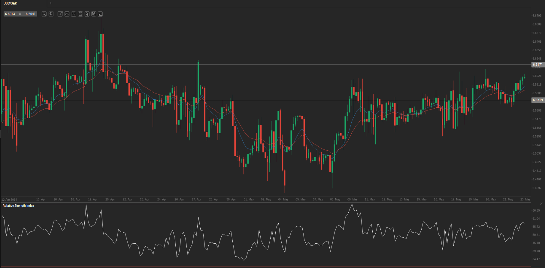 During yesterday’s trading session USD/SEK traded within the range of 6.5651-6.5976 and closed at 6.5918.