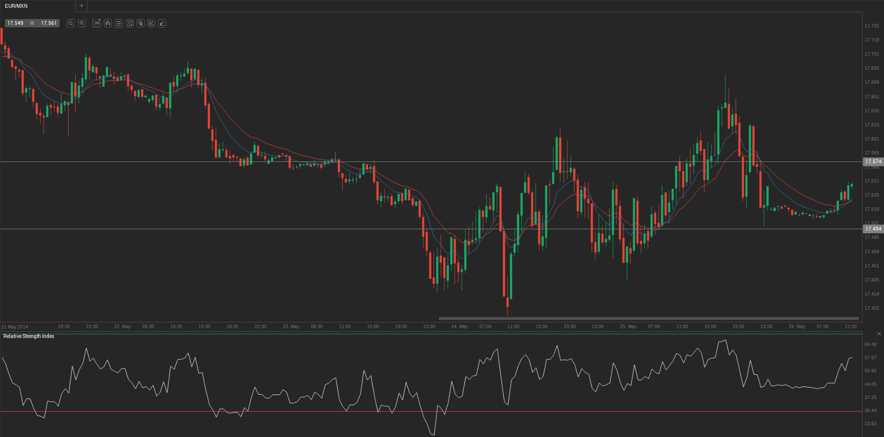 During Friday’s trading session EUR/MXN traded within the range of 17.513-17.591 and closed at 17.526.