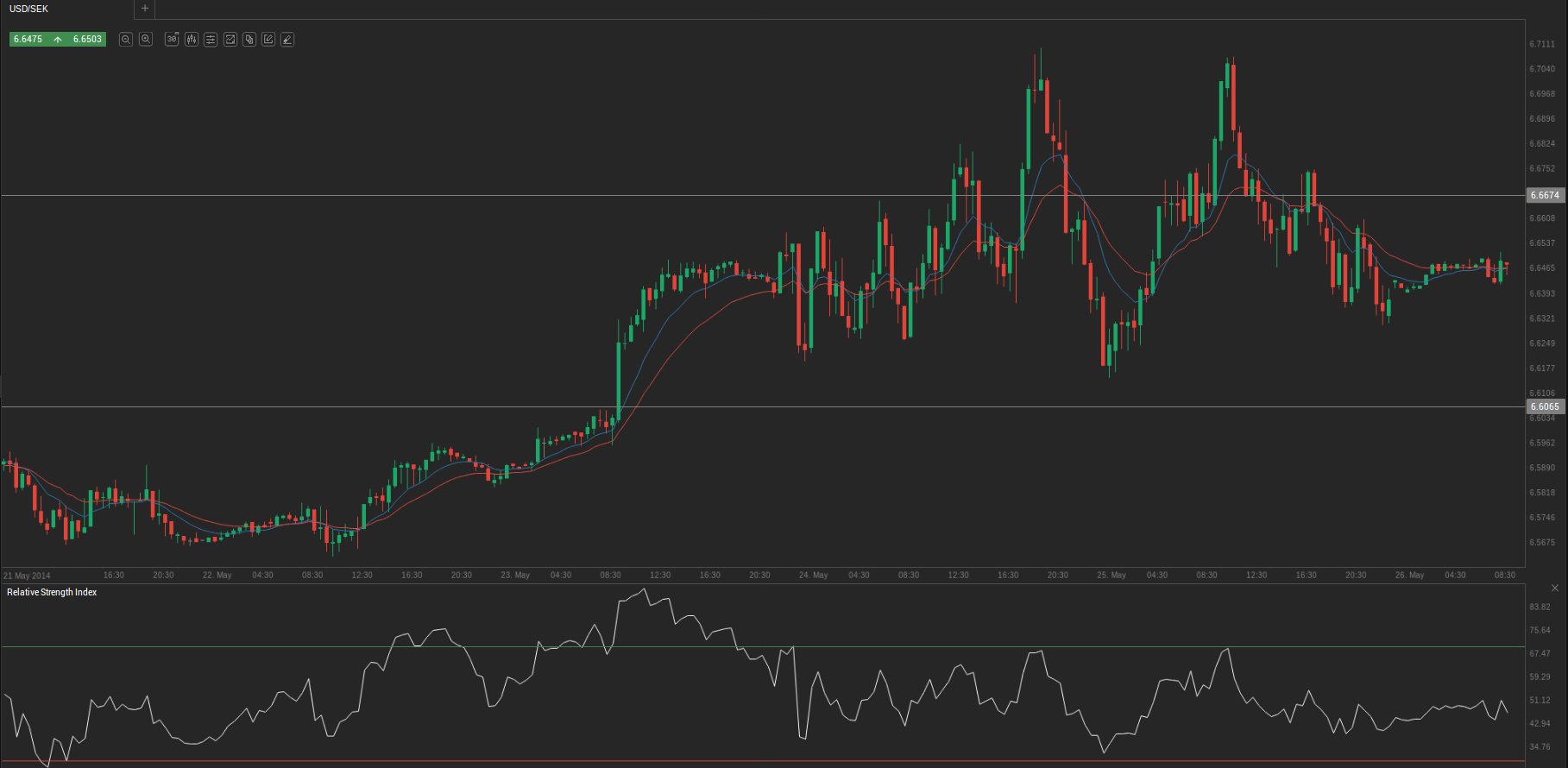 According to Binary Tribune’s daily analysis, in case USD/SEK manages to breach the first resistance level at 6.6674, it will probably continue up to test 6.6895. In case the second key resistance is broken, the pair will probably attempt to advance to 6.7278.