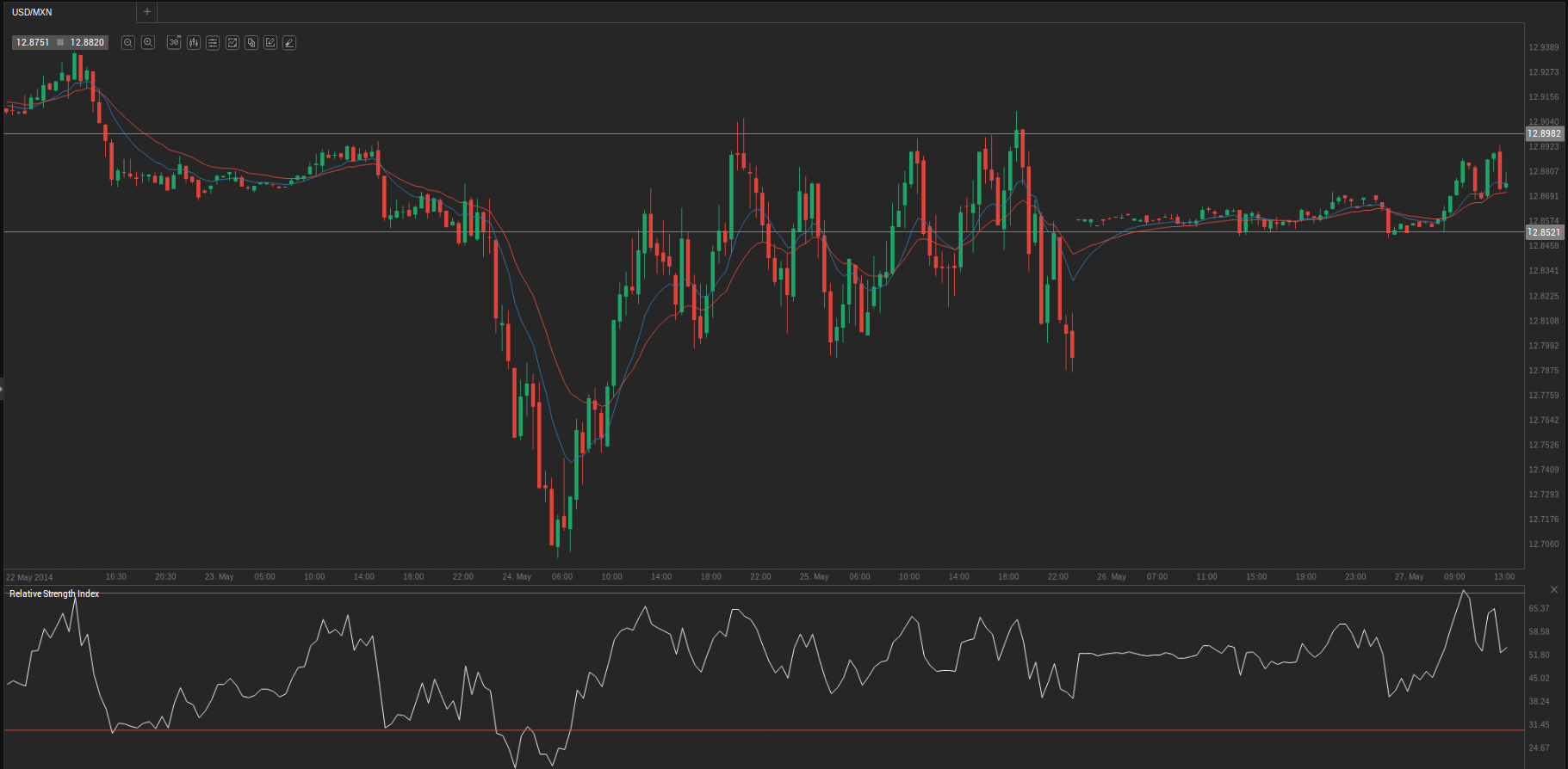 During yesterday’s trading session USD/MXN traded within the range of 12.8529-12.8833 and closed at 12.8669.