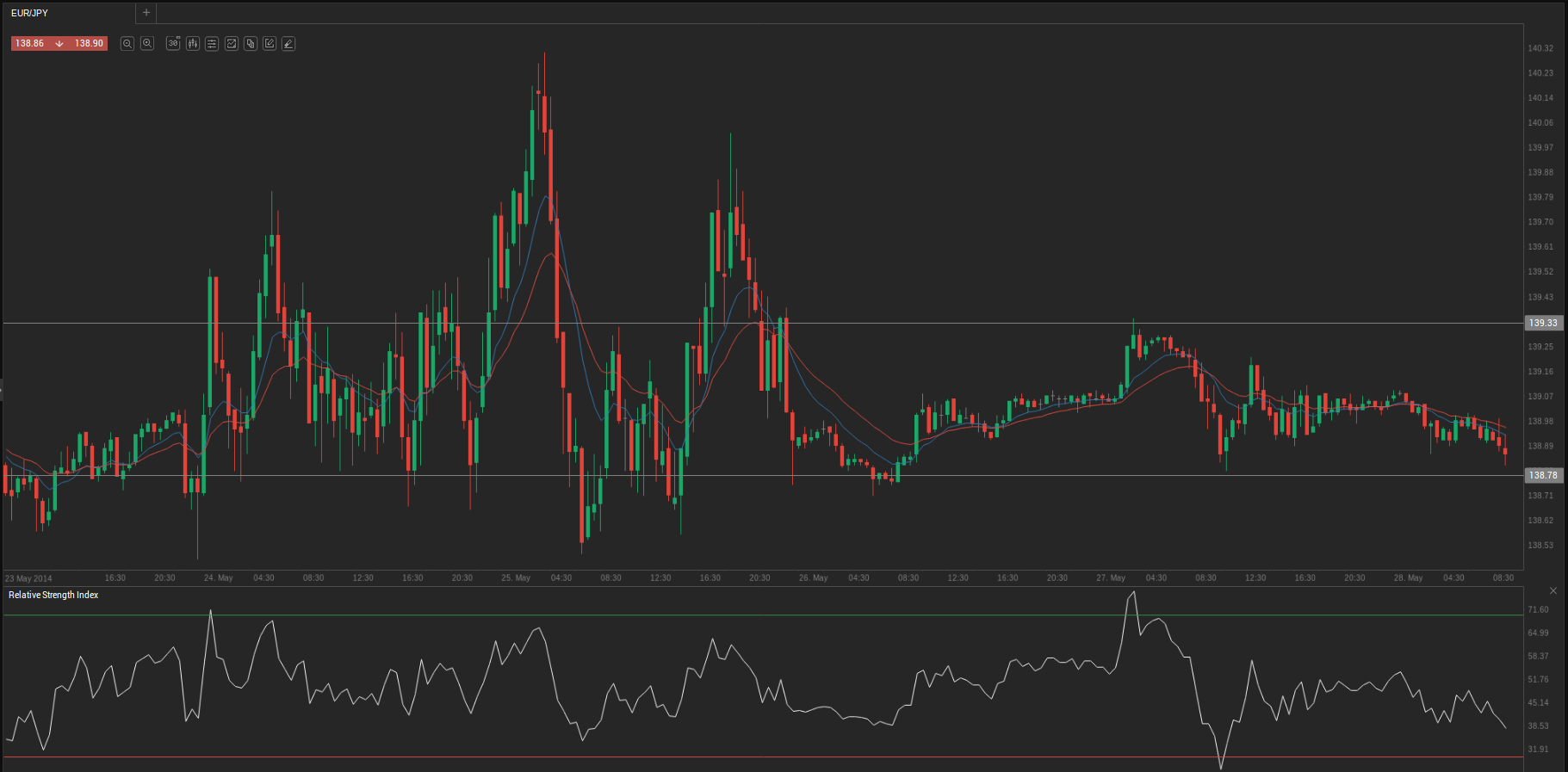 At 6:44 GMT today EUR/JPY was losing 0.11% for the day to trade at 138.91. The pair touched a daily low at 138.88 during early Asian trading hours.
