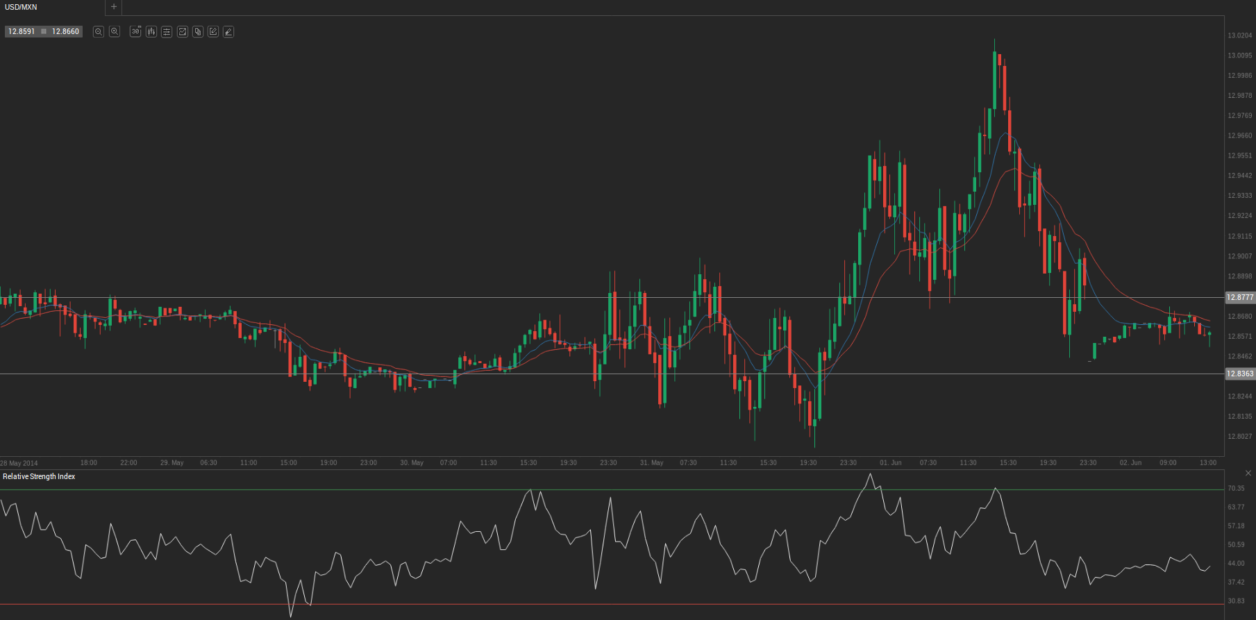 During yesterday’s trading session USD/MXN traded within the range of 12.8309-12.8723 and closed at 12.8600.