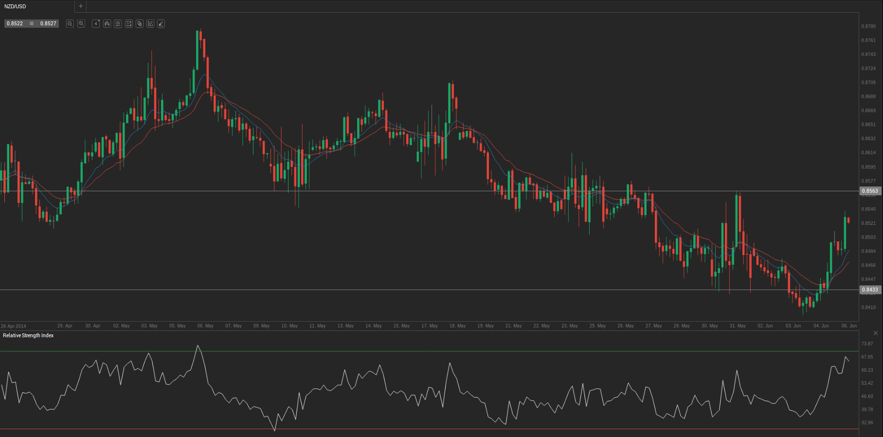 At 9:53 GMT today NZD/USD was adding 0.31% for the day to trade at 0.8526. The pair touched a daily high at 0.8539 at 8:55 GMT, breaching the first key resistance.