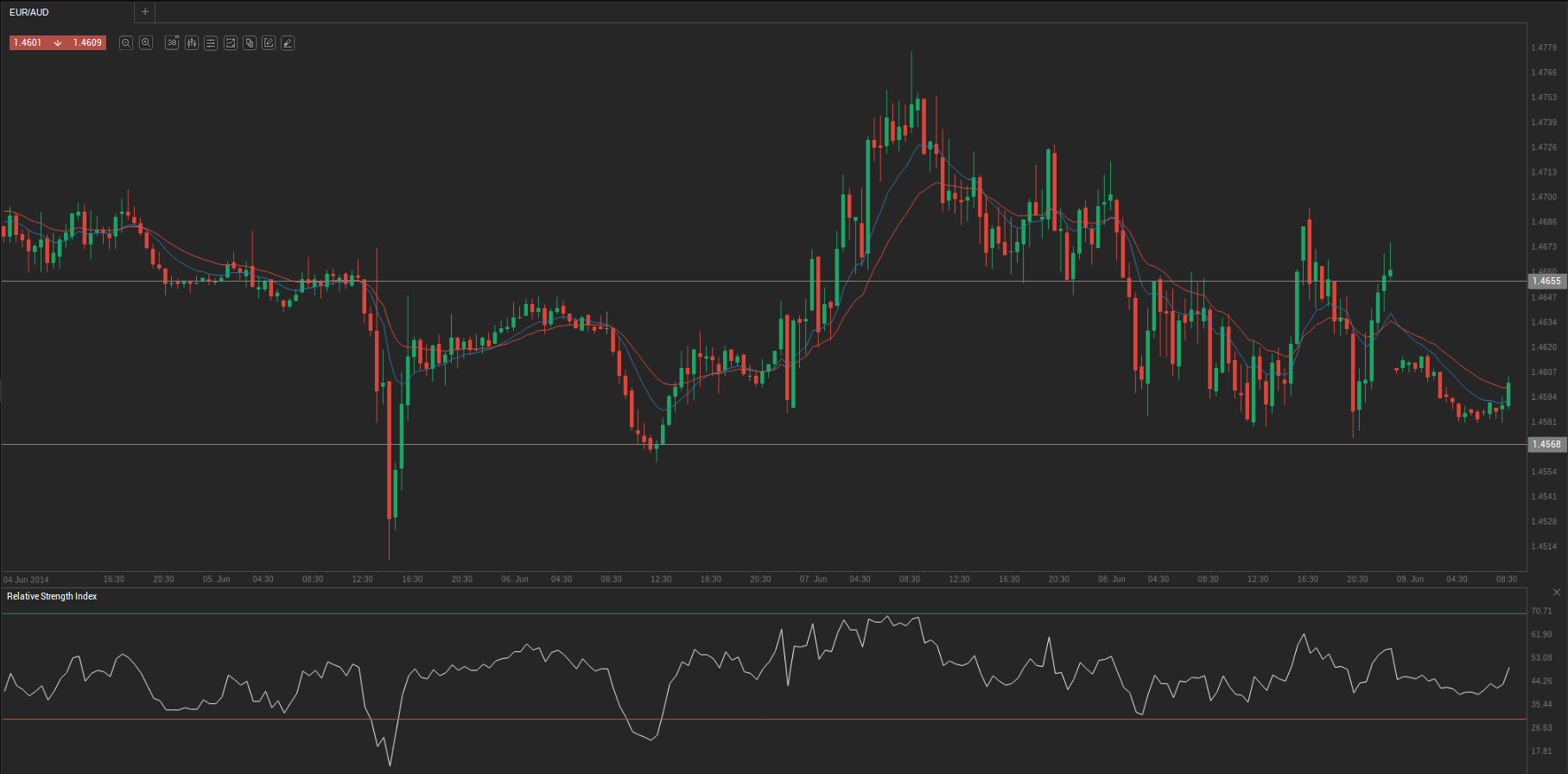 During Friday’s trading session EUR/AUD traded within the range of 1.4564-1.4651 and closed at 1.4614.