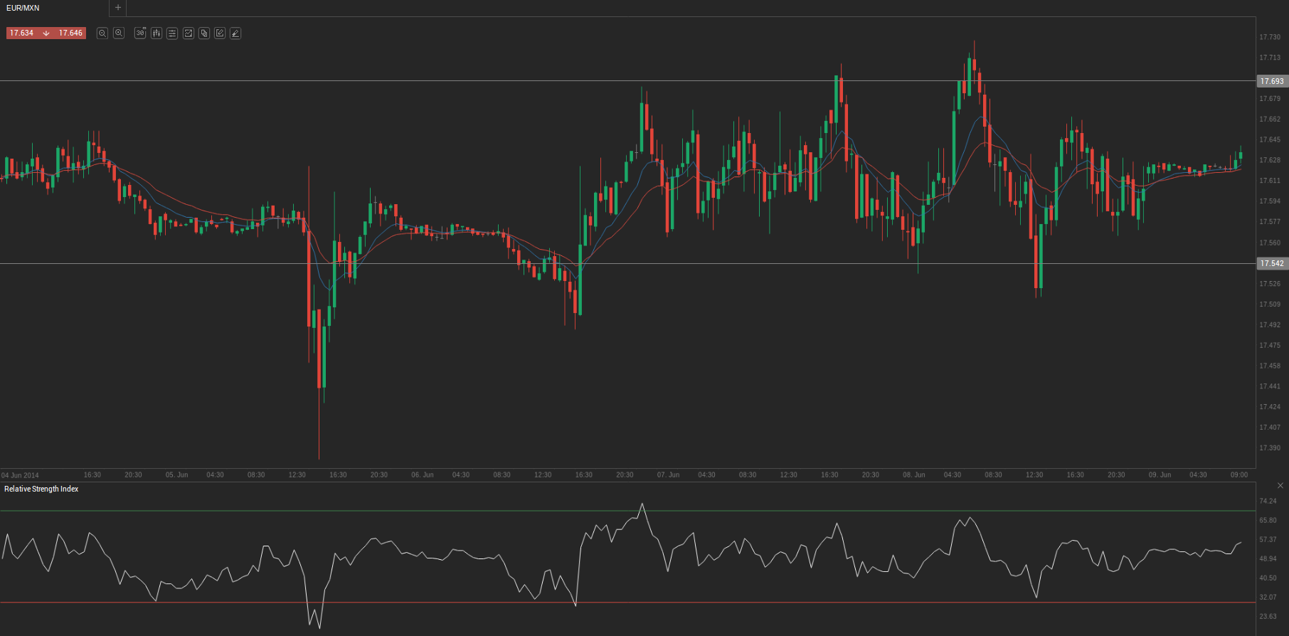 During Friday’s trading session EUR/MXN traded within the range of 17.495-17.646 and closed at 17.641.