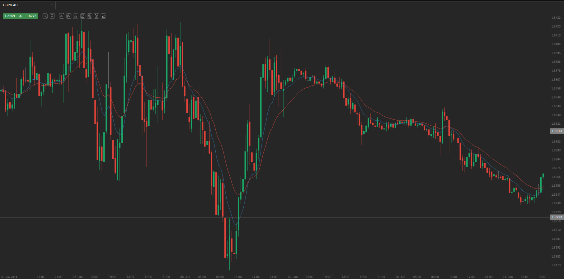At 7:00 GMT today GBP/CAD was losing 0.01% for the day to trade at 1.8270. The pair touched a daily low at 1.8242 at 2:20 GMT.