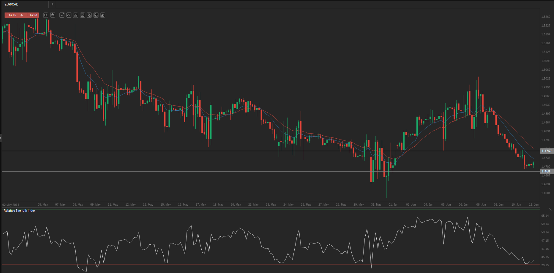 During yesterday’s trading session EUR/CAD traded within the range of 1.4694-1.4768 and closed at 1.4713.