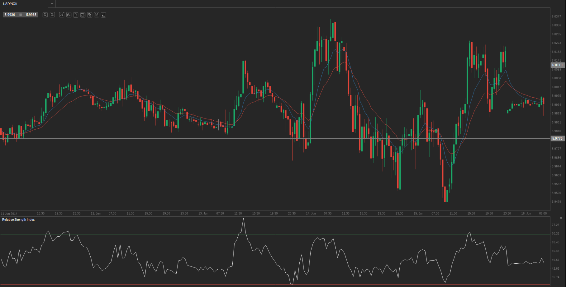 During Friday’s trading session USD/NOK traded within the range of 5.9811-6.0157 and closed at 5.9926.