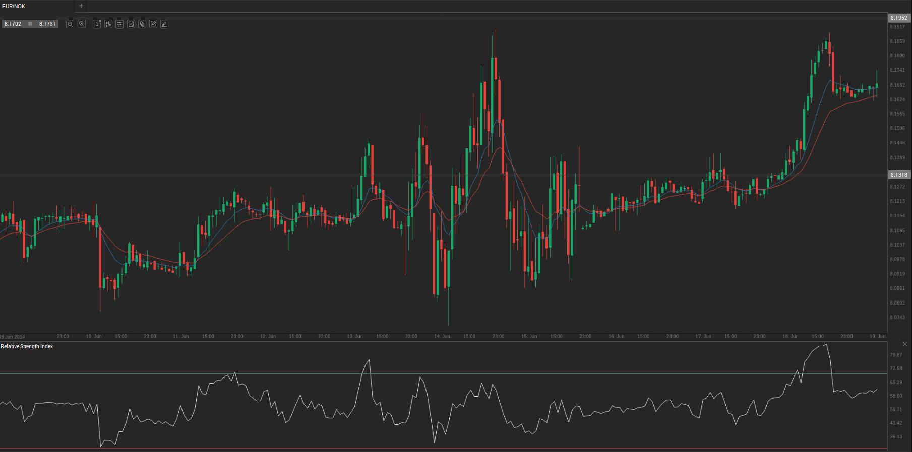 At 6:51 GMT today EUR/NOK was gaining 0.01% for the day to trade at 8.1704. The pair touched a daily high at 8.1762 at 6:15 GMT.