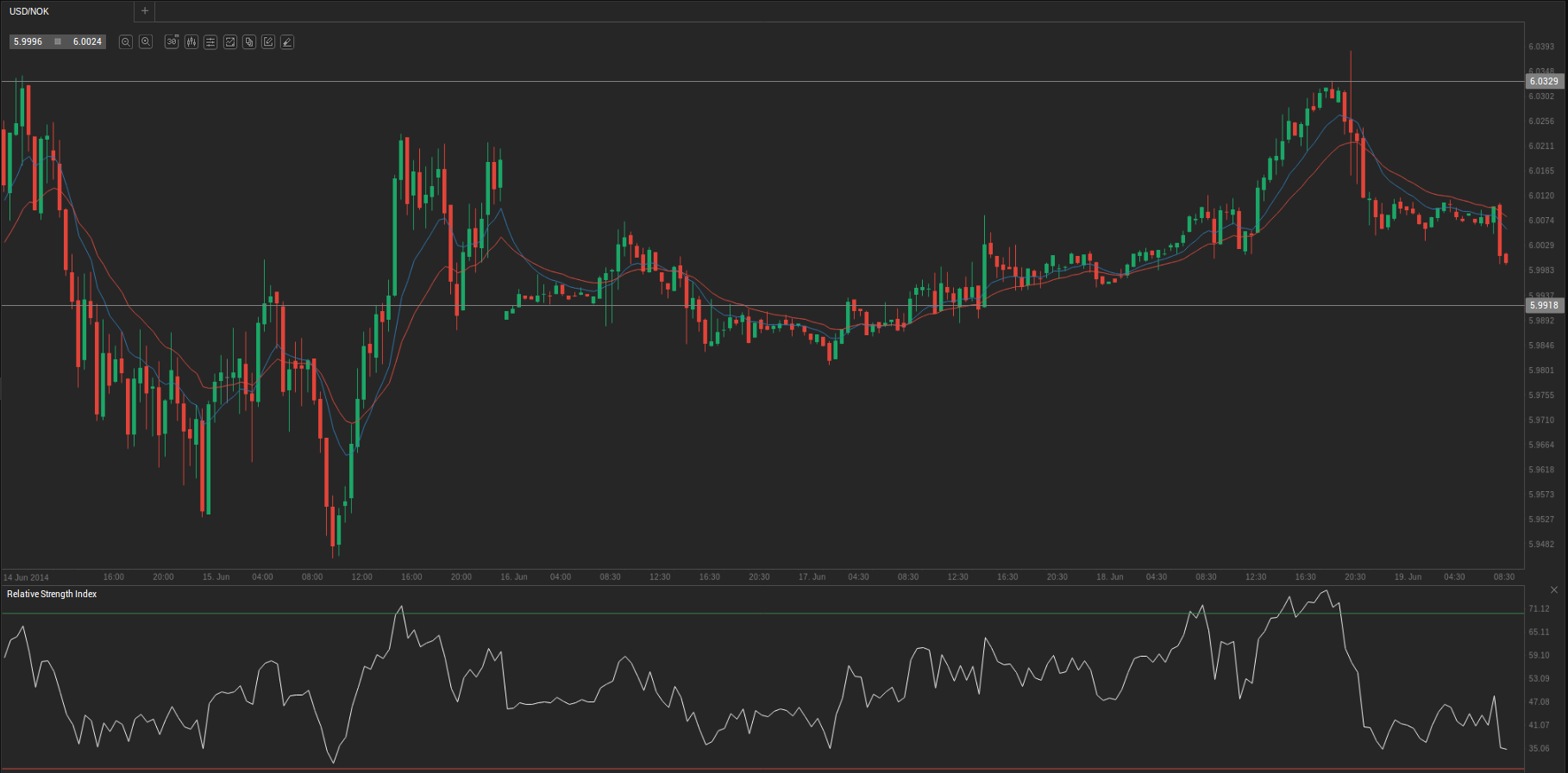 During yesterday’s trading session USD/NOK traded within the range of 5.9989-6.0401 and closed at 6.0089.
