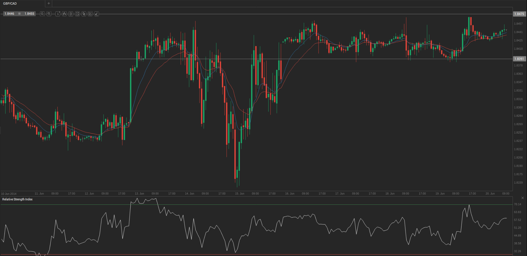 During yesterday’s trading session GBP/CAD traded within the range of 1.8392-1.8476 and closed at 1.8433.