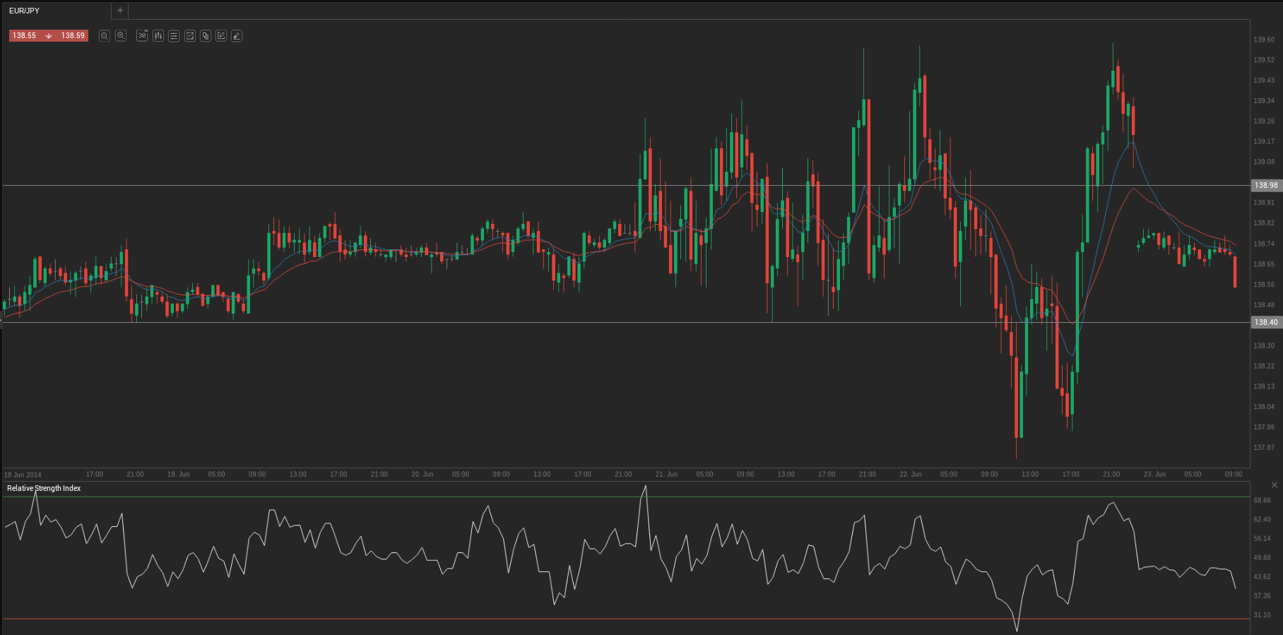 At 6:59 GMT today EUR/JPY was losing 0.14% for the day to trade at 138.65. The pair touched a daily low at 138.60 at 7:00 GMT, breaching the first key support.