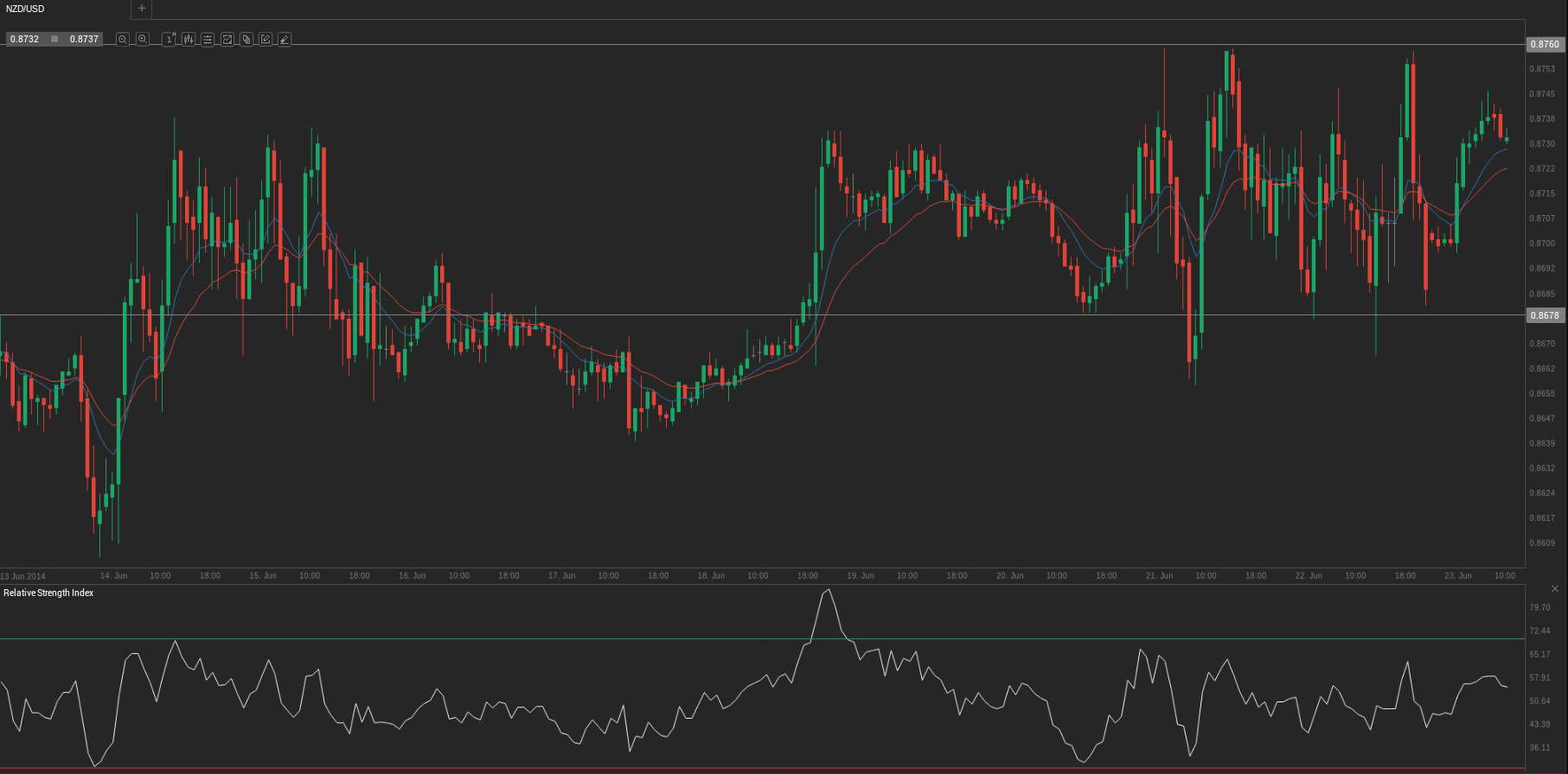 At 9:38 GMT today NZD/USD was gaining 0.47% for the day to trade at 0.8736. The pair touched a daily high at 0.8749 at 6:10 GMT, breaching the two key resistances.