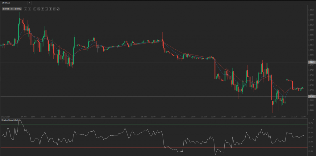 At 11:10 GMT today USD/CAD was losing 0.2% for the day to trade at 1.0736. The pair touched a daily low at 1.0717 at 8:05 GMT, breaching the first key support.