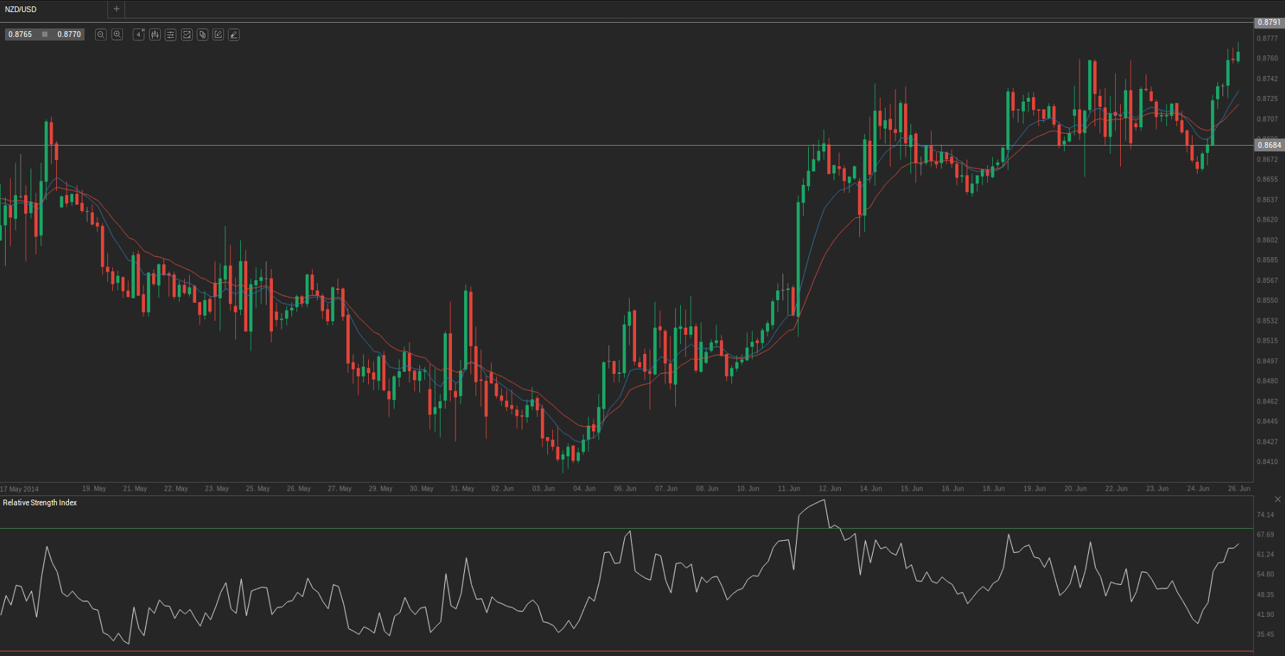 During yesterday’s trading session NZD/USD traded within the range of 0.8662-0.8742 and closed at 0.8735.