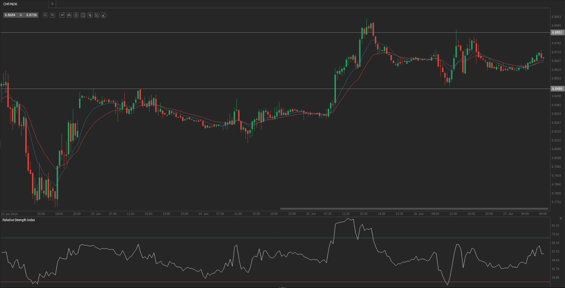 During yesterday’s trading session CHF/NOK traded within the range of 6.8530-6.8894 and closed at 6.8643.