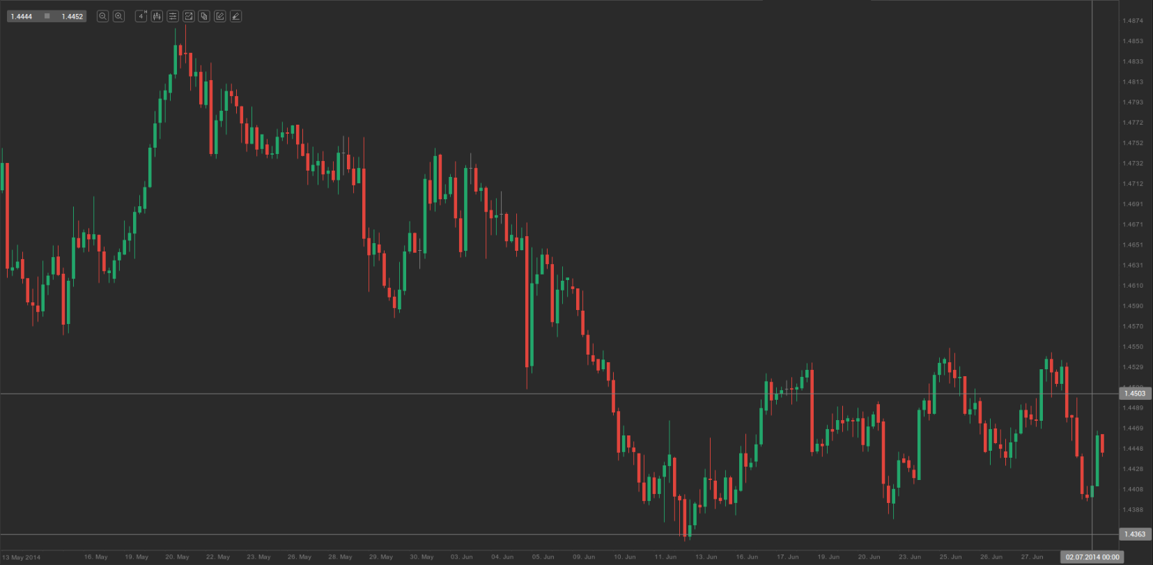 During yesterday’s trading session EUR/AUD traded within the range of 1.4400-1.4540 and closed at 1.4414.