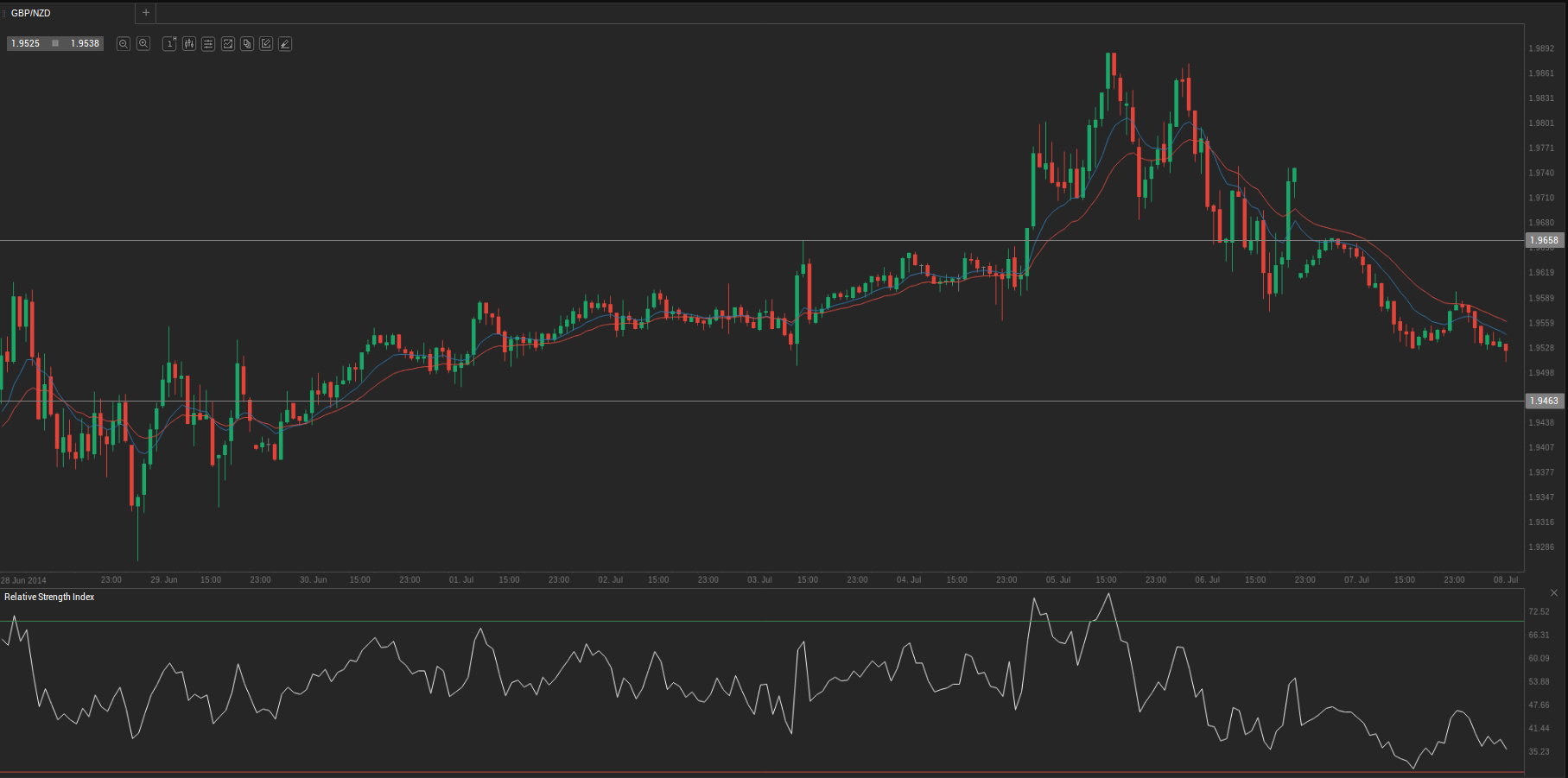 During yesterday’s trading session GBP/NZD traded within the range of 1.9535-1.9668 and closed at 1.9586.