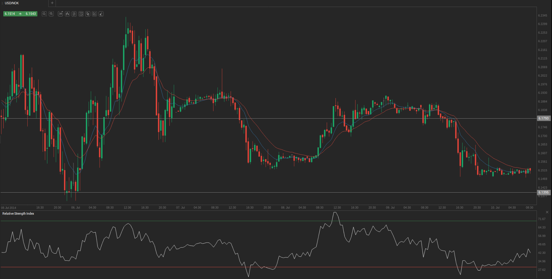 During yesterday’s trading session USD/NOK traded within the range of 6.1498-6.1898 and closed at 6.1540.