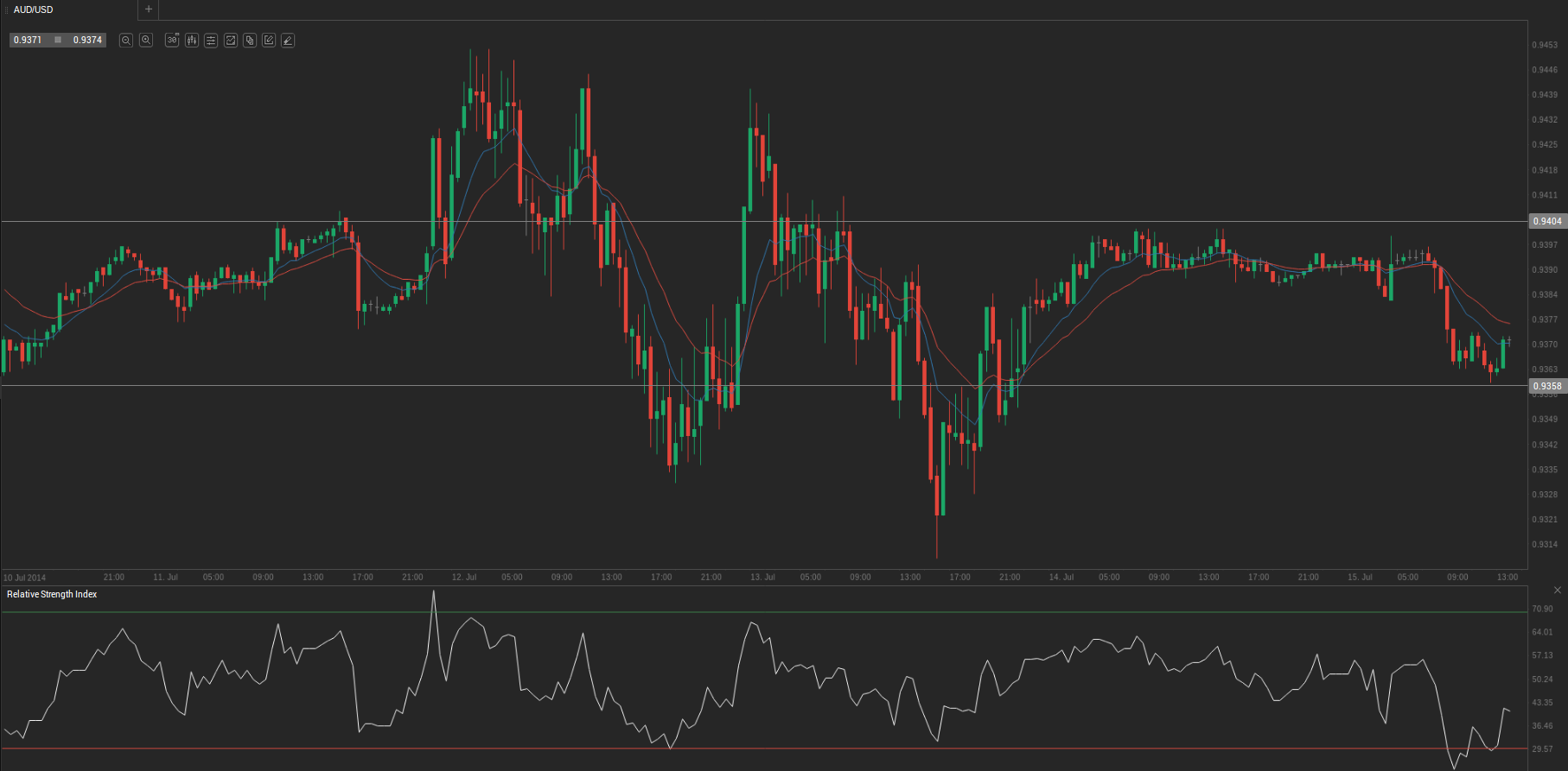 At 11:14 GMT AUD/USD traded at 0.9372, losing 0.22% for the day. The pair touched a daily low at 0.9360 at 9:50 GMT, breaching the two key supports.