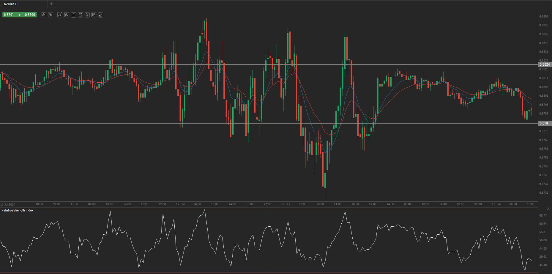 At 8:15 GMT today NZD/USD was losing 0.16% for the day to trade at 0.8793. The pair touched a daily low at 0.8786 at 6:35 GMT, breaching the first key support.