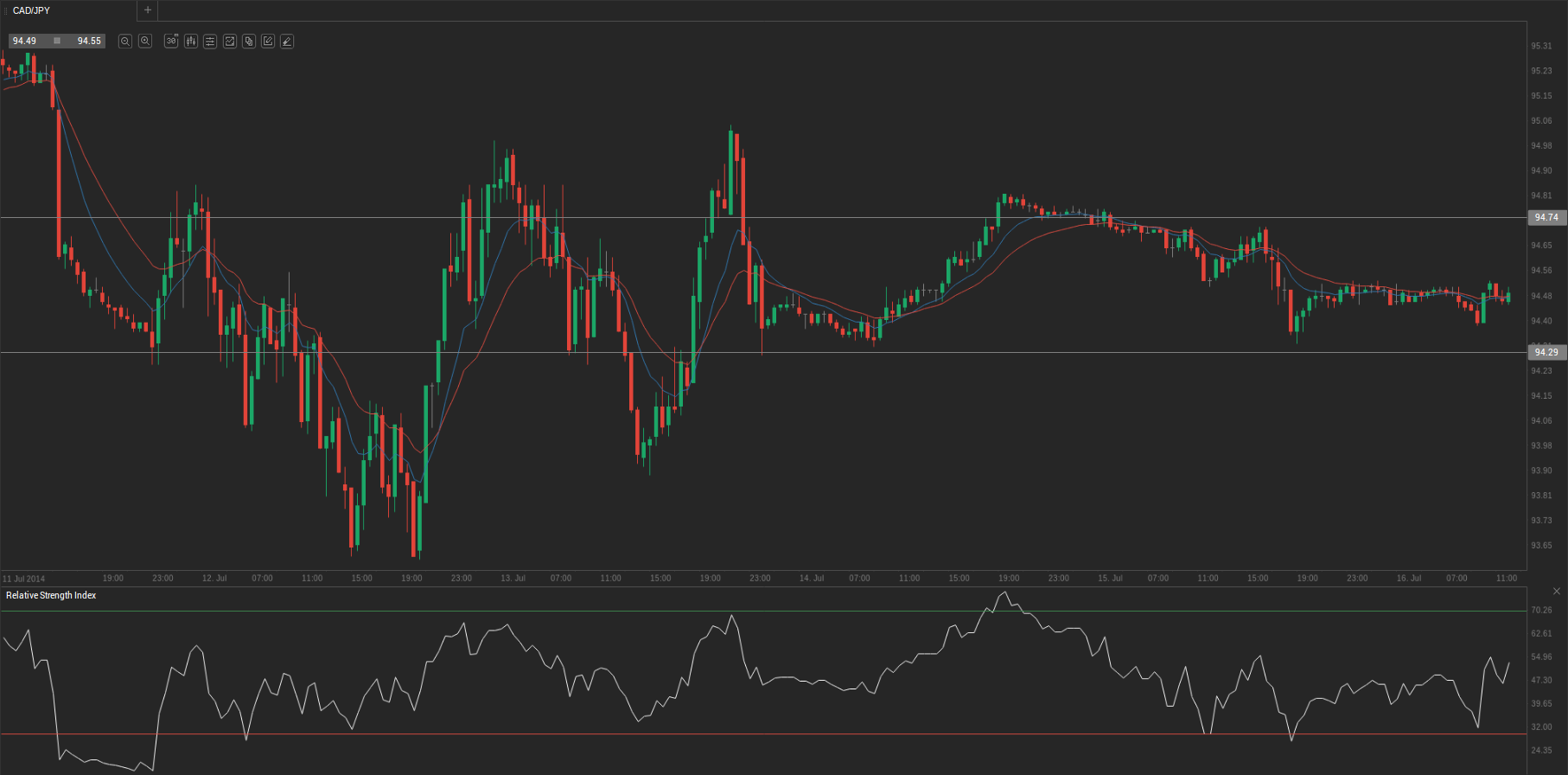 During yesterday’s trading session CAD/JPY traded within the range of 94.35-94.80 and closed at 94.49.