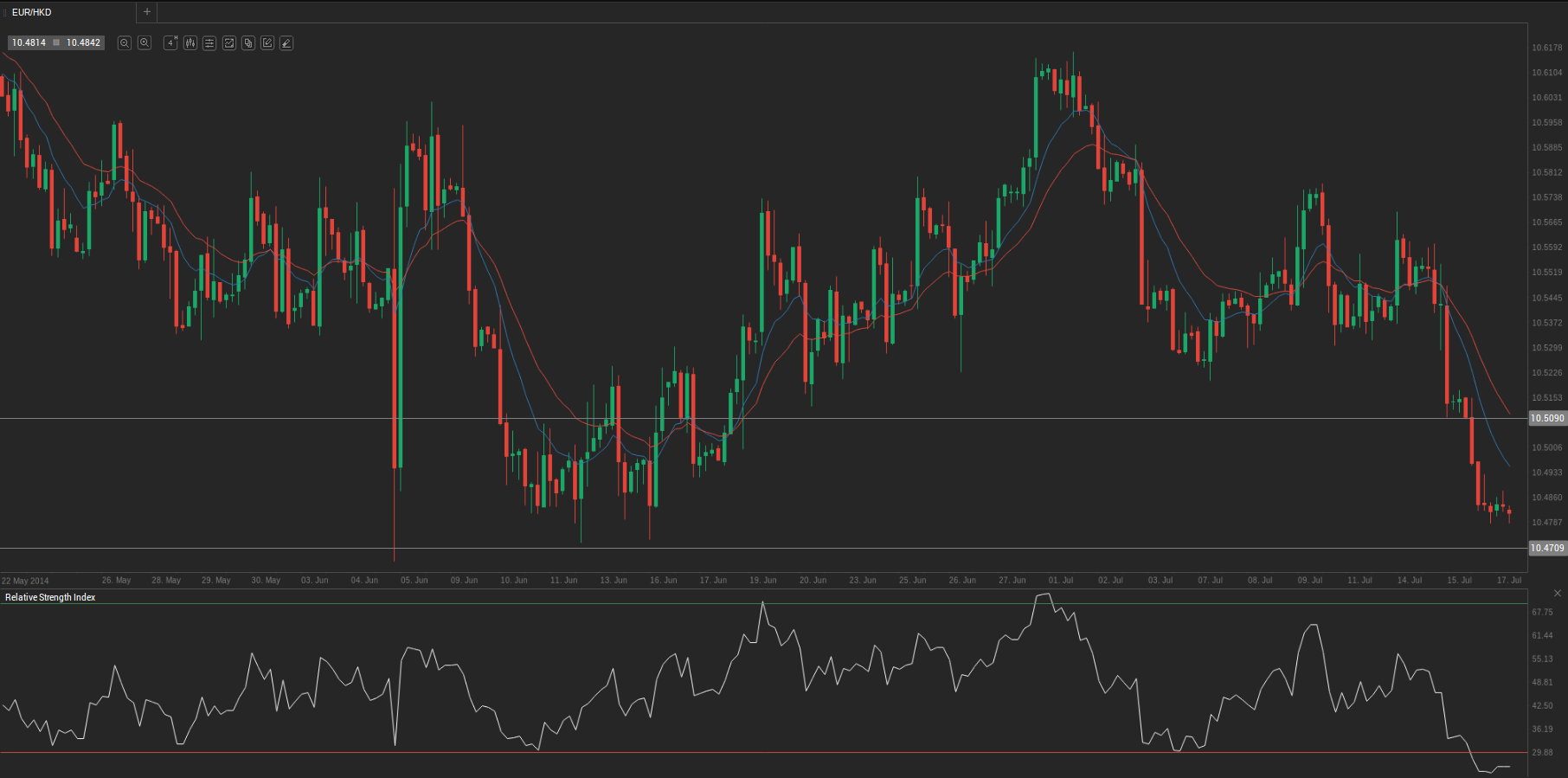 During yesterday’s trading session EUR/HKD traded within the range of 10.4796-10.5177 and closed at 10.4856.