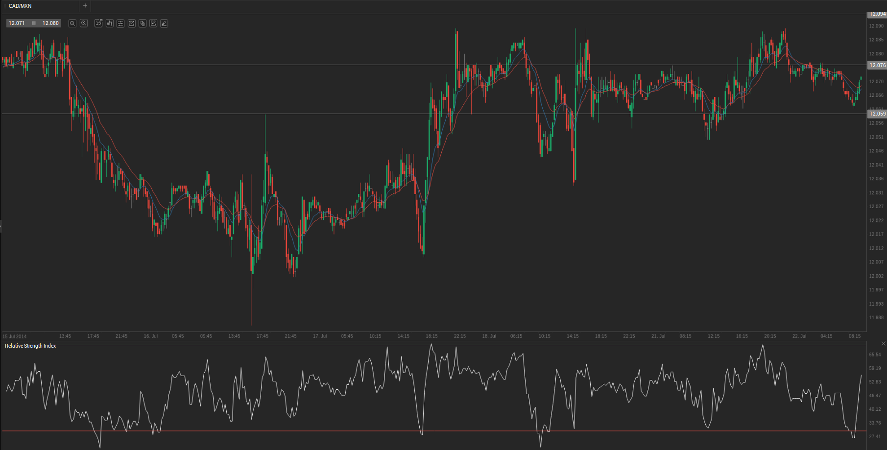 At 6:56 GMT today CAD/MXN was losing 0.03% for the day to trade at 12.073. The pair touched a daily low at 12.065 at 5:55 GMT.