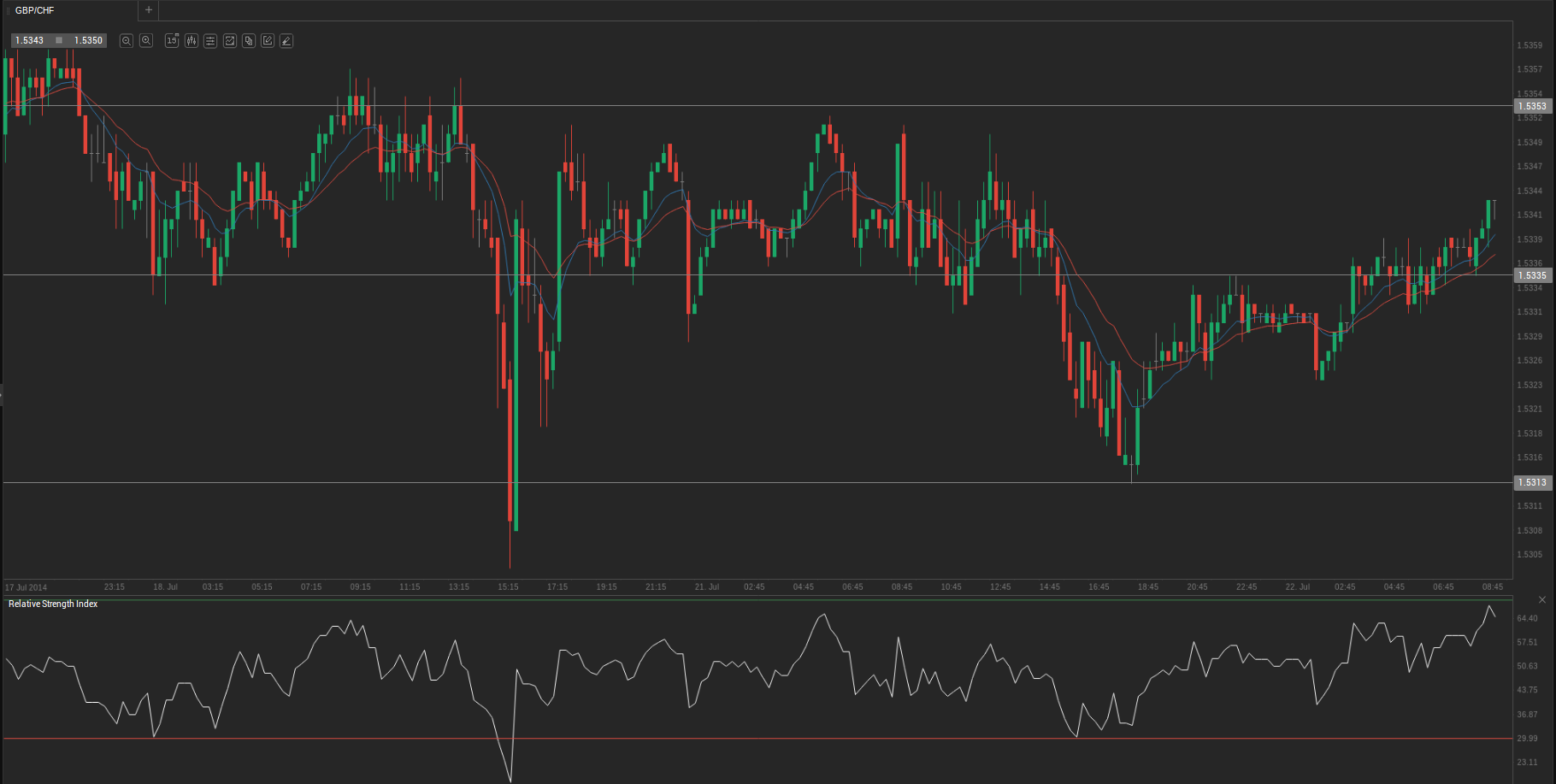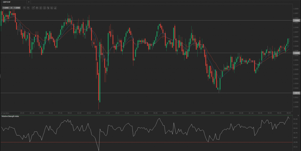 At 6:21 GMT today GBP/CHF was gaining 0.08% for the day to trade at 1.5346. The pair touched a daily high at 1.5347 at 6:10 GMT.