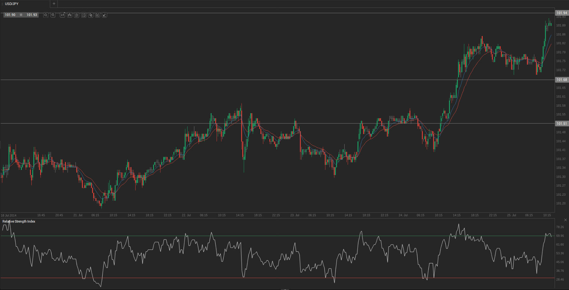 According to Binary Tribune’s daily analysis, the central pivot point for the pair is at 101.68. In case USD/JPY manages to breach the first resistance level at 101.94, it will probably continue up to test 102.12.