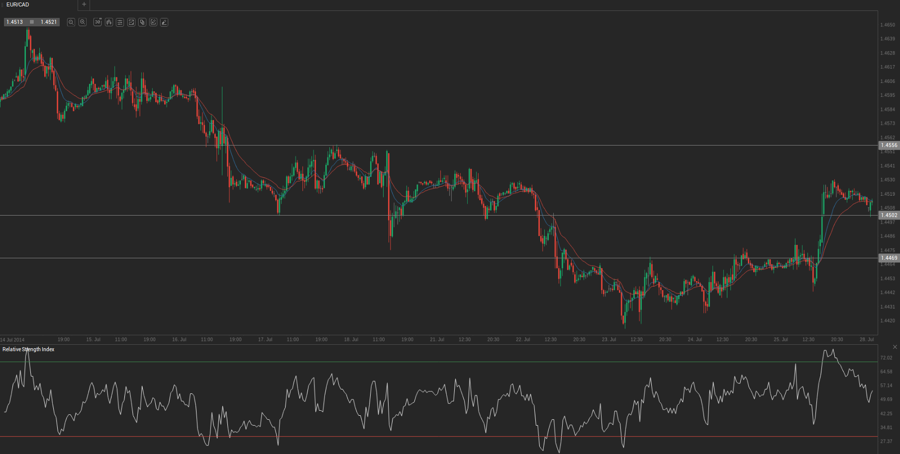 During Friday’s trading session EUR/CAD traded within the range of 1.4448-1.4534 and closed at 1.4524.