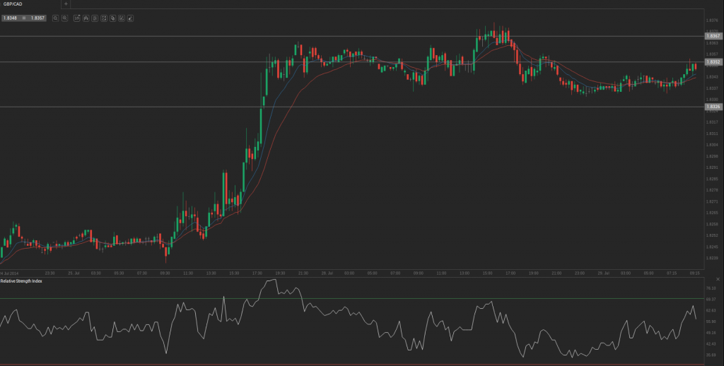 During yesterday’s trading session GBP/CAD traded within the range of 1.8338-1.8379 and closed at 1.8340.