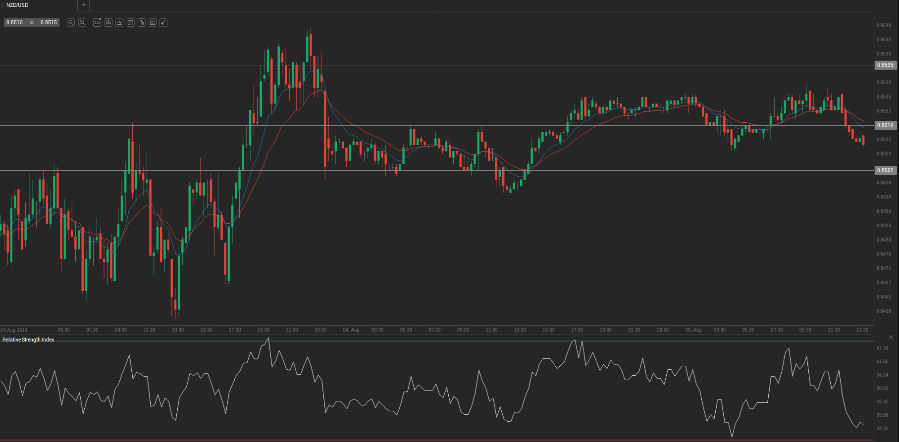 According to Binary Tribune’s daily analysis, the central pivot point for the pair is at 0.8516. In case NZD/USD manages to breach the first resistance level at 0.8535, it will probably continue up to test 0.8549. In case the second key resistance is broken, the pair will probably attempt to advance to 0.8568.