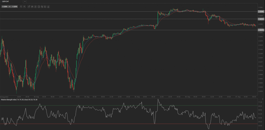 During yesterday’s trading session GBP/CHF traded within the range of 1.5287-1.5359 and closed at 1.5301, losing 0.31% for the day.