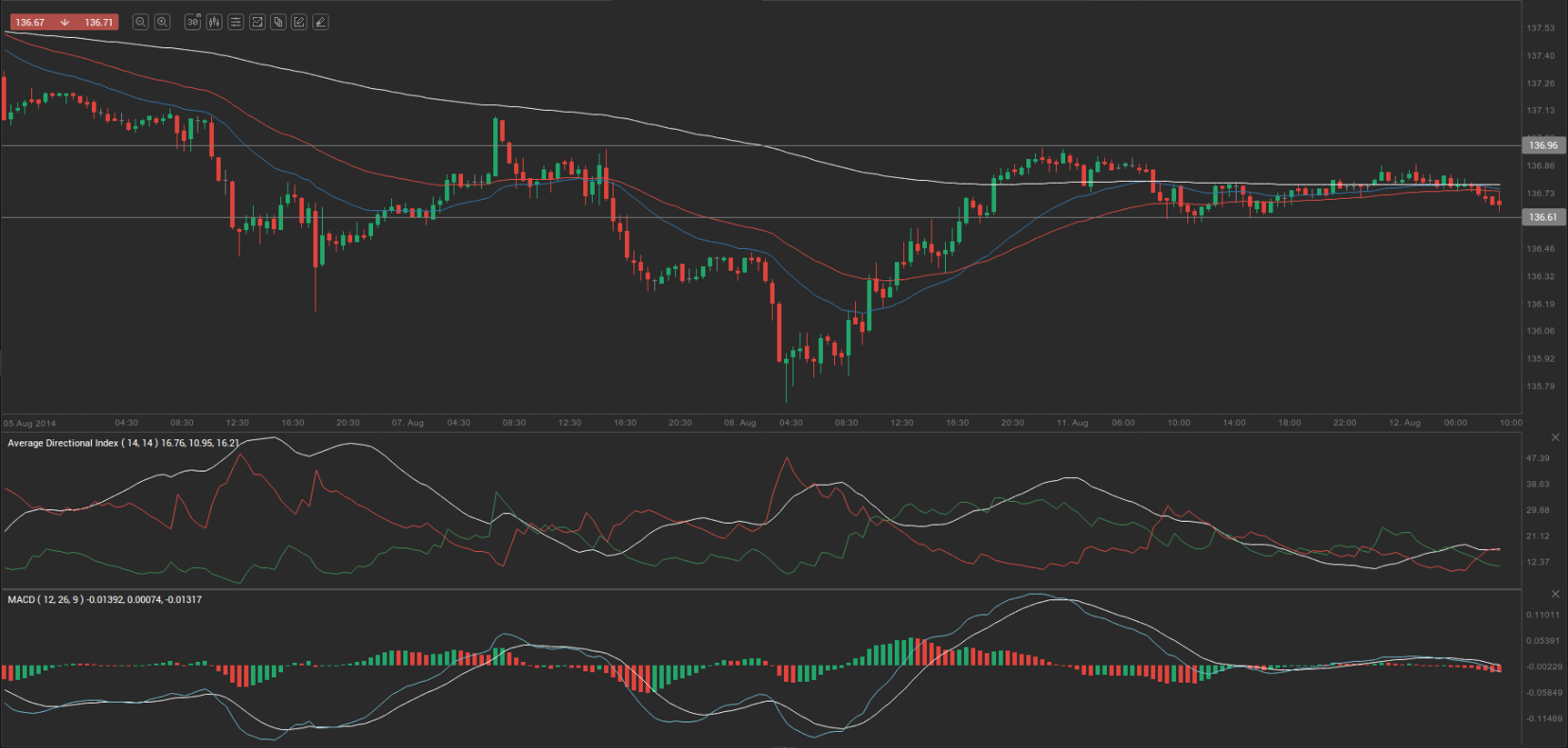 At 7:11 GMT today EUR/JPY was up 0.01% for the day to trade at 136.73. The pair touched a daily high at 136.90 during early Asian session.